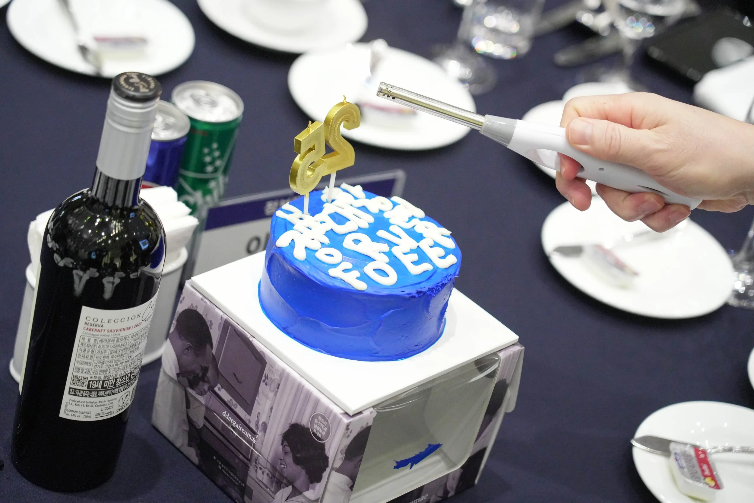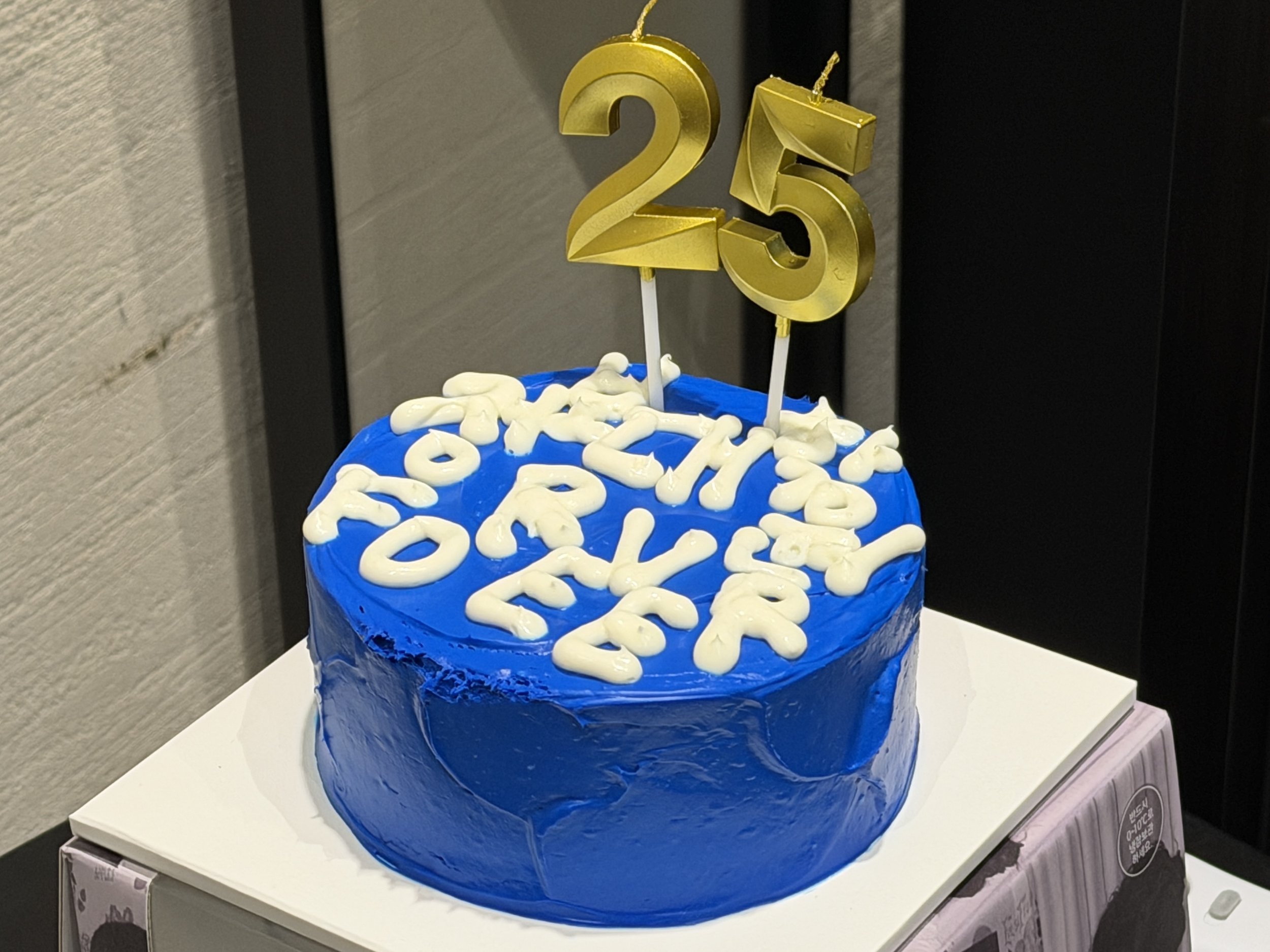 이어서 케이크 커팅식이 진행되었습니다 🎂 아까 준비해두었던 레터링 케이크 위에 드디어 숫자 25 빅초가 올라갔는데요,