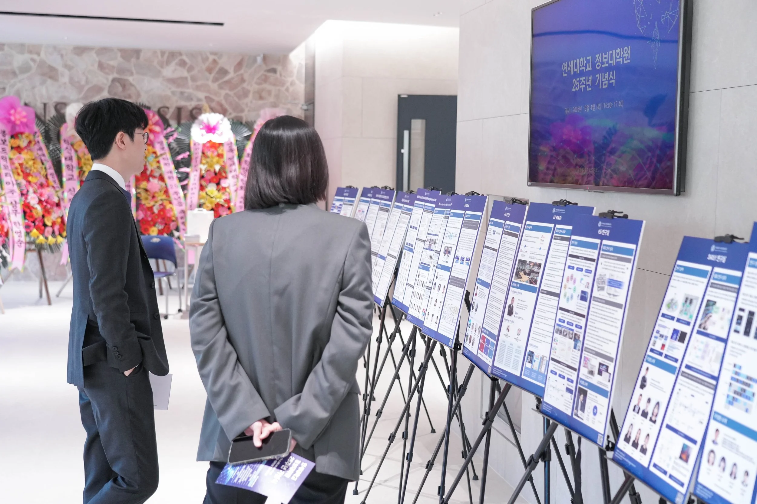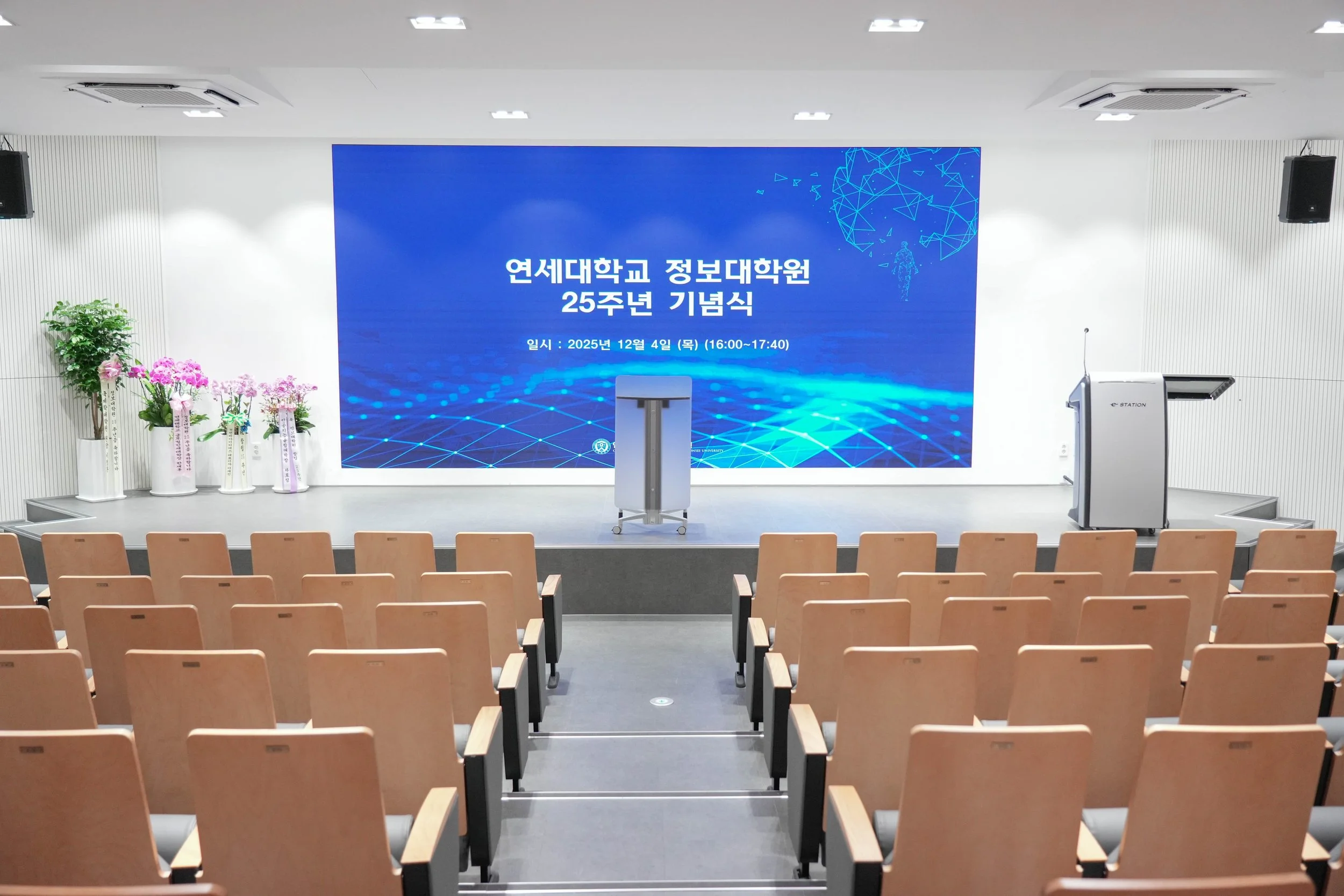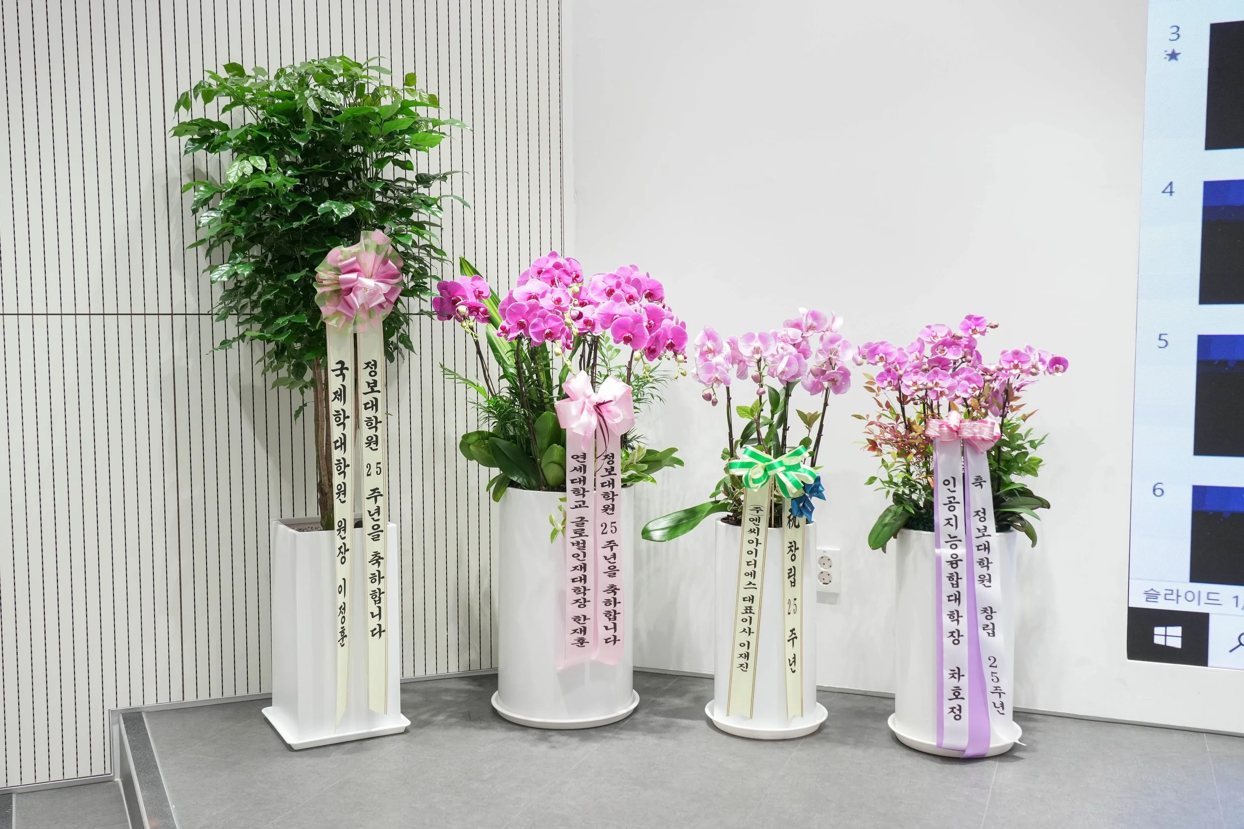 뿐만 아니라 연세대학교 내 여러 학과들에서도 정보대학원 25주년을 축하하는 의미로, 정성 가득한 멋진 화분들을 보내주셨어요~ 🌿✨ 이쯤 되니 비로소 25주년 행사의 실감이 나기 시작했습니다.