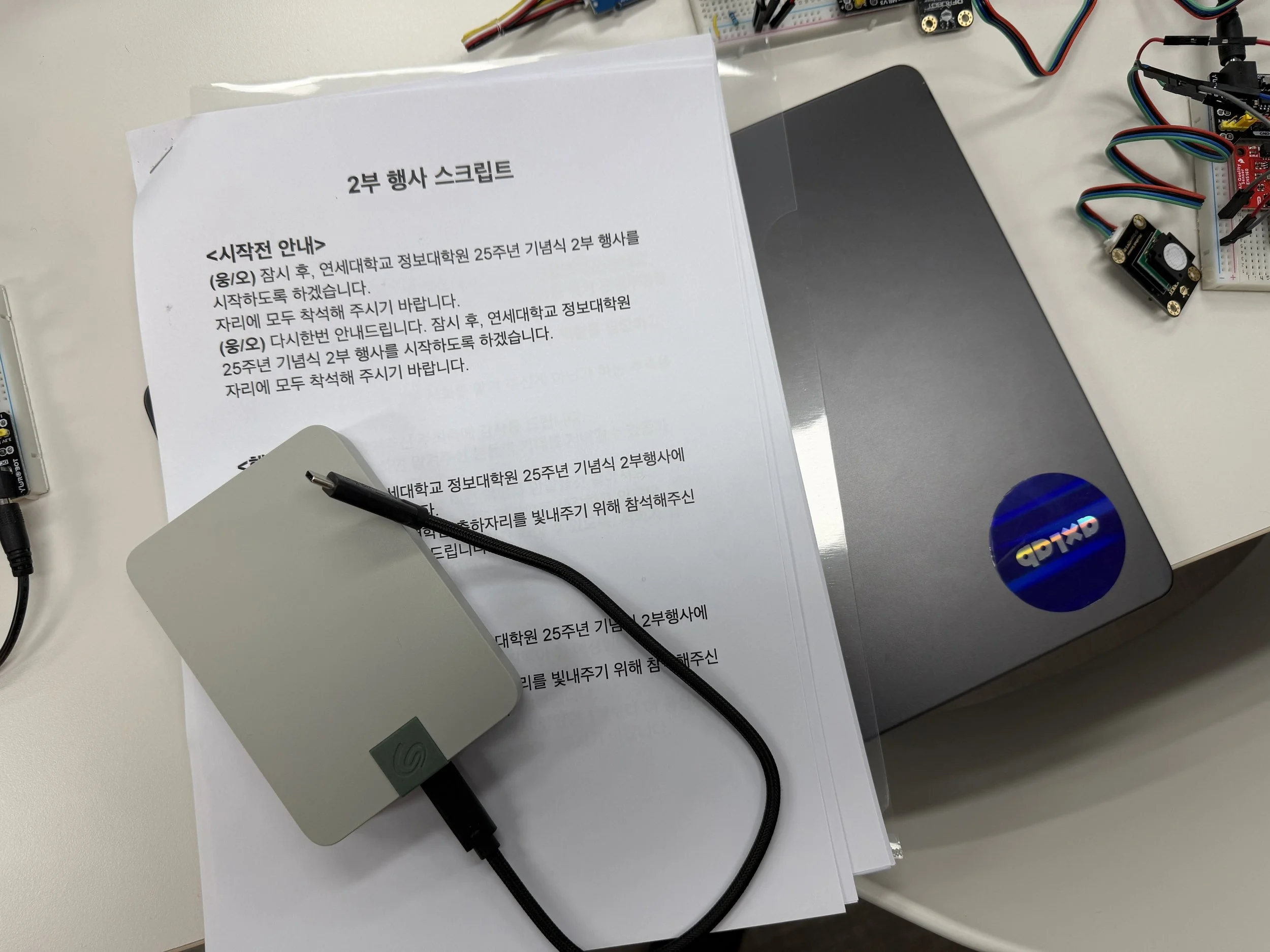 내빈 리스트, 우수 동문 표창, 건배사, 퀴즈, 경품 추첨 등 굉장히 많은 순서들이 준비되어 있었던 만큼, 행사용 스크립트는 필수였는데요. 다행히도(?) 정말 가까스로 완성되었다고 합니다 ㅎㅎ 아슬아슬 ㅋㅋ ⏰ 과연 두 교수님께서 현장에서 어떤 케미를 보여주실지, 슬슬 기대가 되기 시작합니다 👀✨