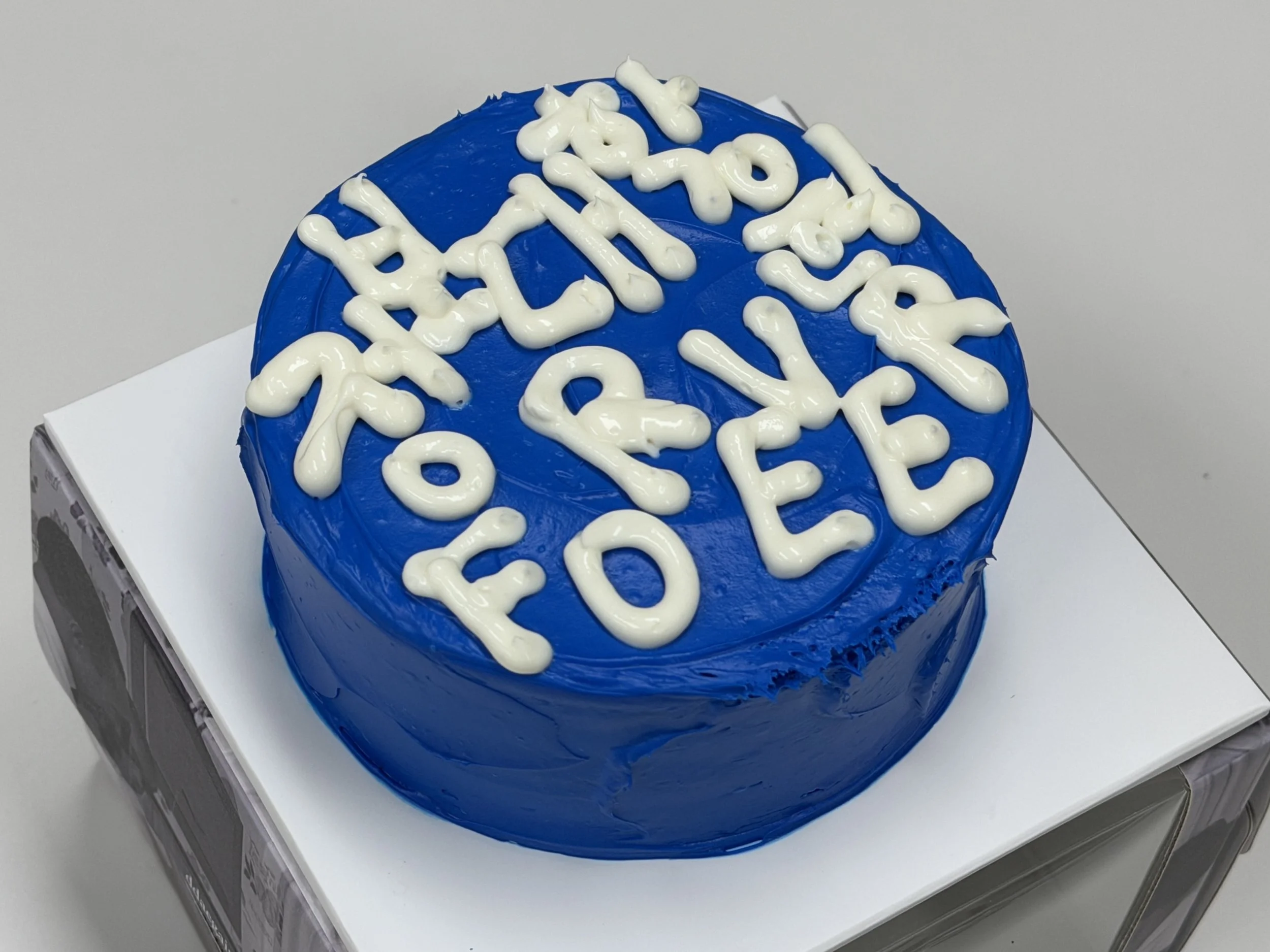 2부 행사에 사용될 케이크도 준비되었습니다 🎂 약간 허전스러운가 싶기도 했지만, 나름대로 연세대를 상징하는 쨍한 블루 컬러가 고스란히 살아 있는 레터링 케이크였습니다.
