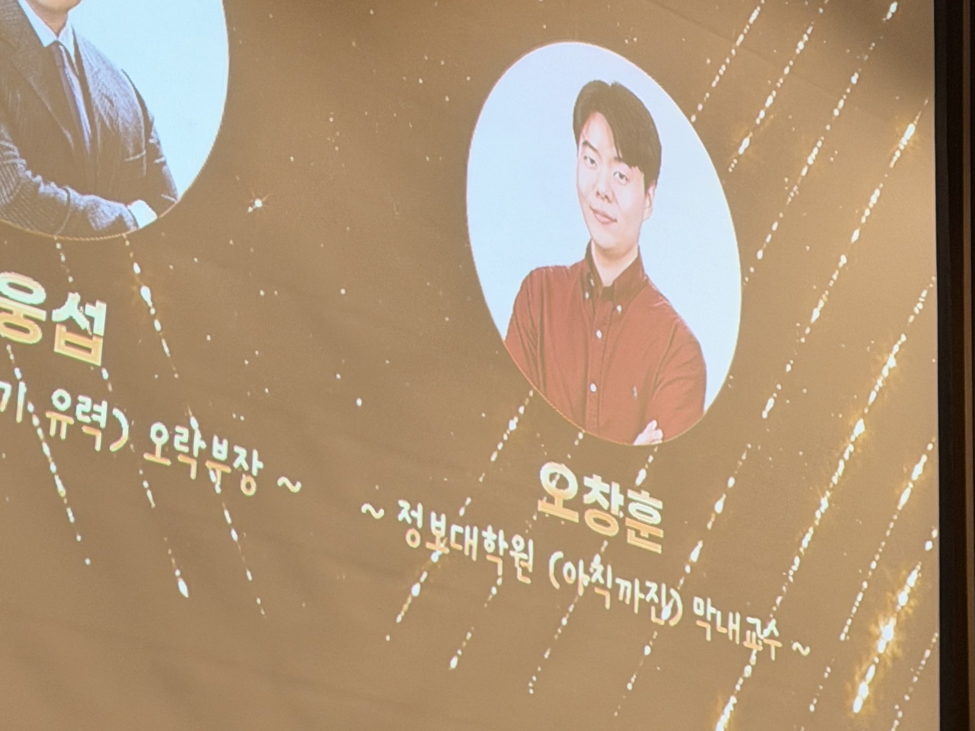 하지만 이건 정말 찰나의 표정에 불과했고요 ㅋㅋ 실제로는 교수님께서 이교수님과 함께 밝고 재미있게 분위기를 잘 띄우시면서, 2부 행사를 무사히 잘 진행하셨다는 훈훈한 후문이 전해지고 있습니다… ✨👏