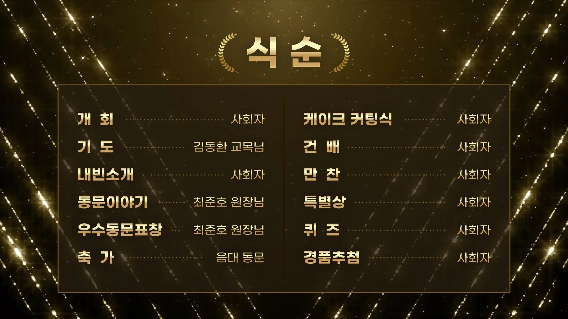 2부 만찬 행사는 위와 같은 구성으로 진행되습니다. 저는 오로지 경품추첨만 보입니다. ㅎㅎ