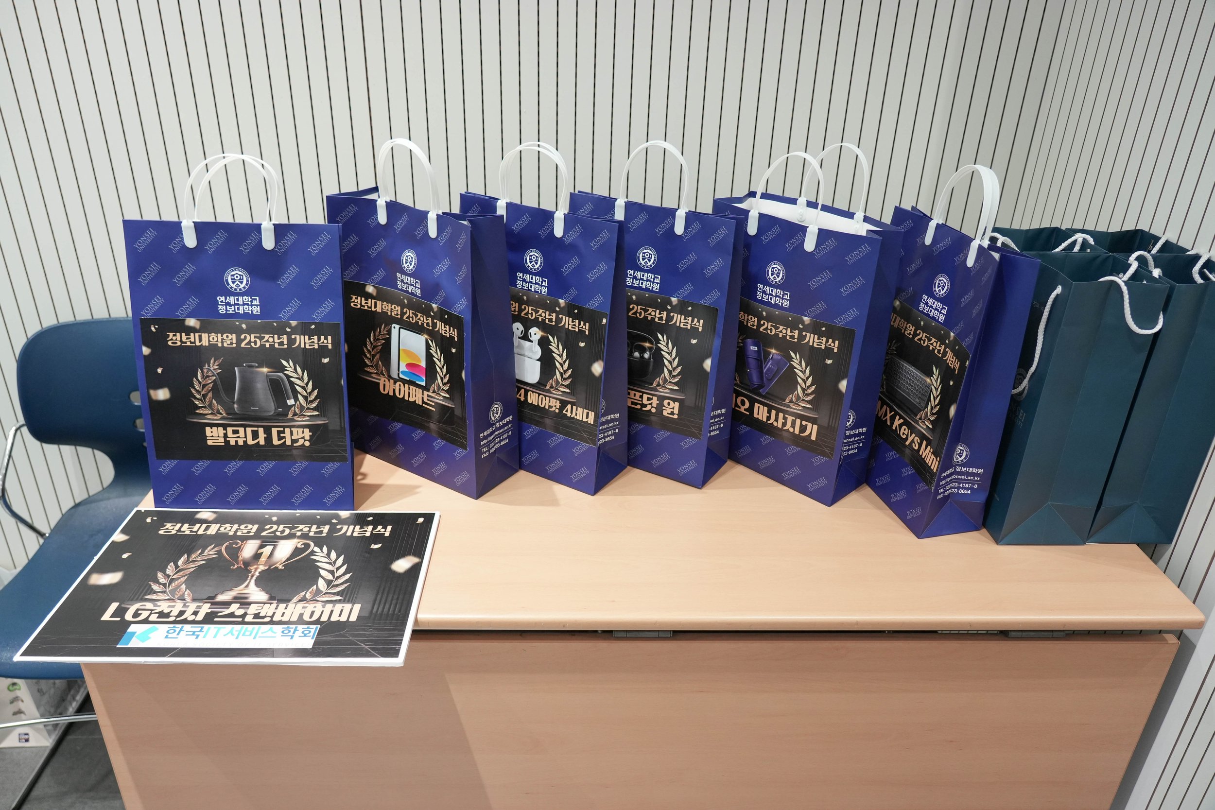 네, 퀴즈 문제들은 이교수님께서 직접 출제해 주셨다고 하는데요. 문제들은 모두 연세대학교, 정보대학원, 25주년, 그리고 2000년과 관련된 깨알 같은 내용들로 구성되어 있었습니다 🧠✨ 겉보기에는 쉬워 보이면서도, 막상 풀어보려니 생각보다 또 어려운 듯한(?) 꽤나 아리송한 문제들이었는데요. 저는 패기만 앞섰을 뿐, 순발력은 거의 제로였던 관계로… 😅 허망하게 다른 분들이 경품을 받아 가는 모습만 멀뚱히 바라봐야 했답니다 ㅠㅠ ㅋㅋ