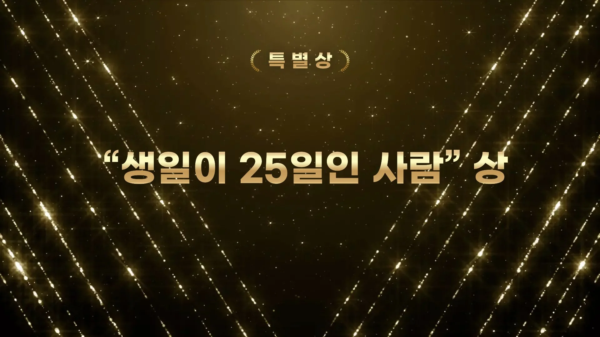 마지막 특별상으로는 전 연령대를 아우르기 위해, “생일이 25일인 사람 상”이 수여되었습니다 🎂📅 아니 근데 왜죠 ㅋㅋ 저는 정말 모든 조건을 요리조리 피해 가기만 하는 건지… 😂 아무래도 저는 다음 순서인 퀴즈에 모든 희망을 걸어봐야 할 것 같습니다 🙏😆