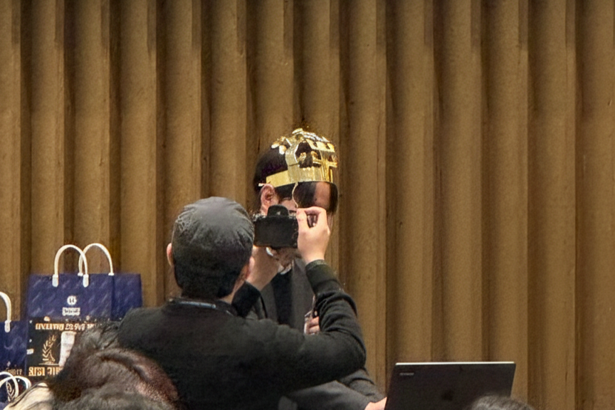 네, 분명히 ‘00학번상’ 수상자에게만 증정되는 줄 알았던 그 신라 금관이었는데요… 아까 조립 사진을 찍을 때부터 문득 불안한 예감이 스쳤고, 그 예감은 보기 좋게 틀리지 않았습니다 😅 정말 어느 순간부터 오교수님께서 금관을 쓰고 계시더군요 ㅎㅎ (또르륵) ㅋㅋ 이거 뭐 거의 벌칙 아니냐고 ㅋㅋㅋ